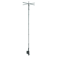 Uma antena vertical de 80/40 metros de alto desempenho. Vareta de quarto de onda de tamanho completo para 40 metros, isto é 10 m de poder de radiação implacável. Forro fino, forma de fibra de vidro de baixa perda, tubos de alumínio 6061 - T6 de alta resistência, alças de 1500 Watts PEP, requer escopo e contrapesos radiais ou tela à terra.